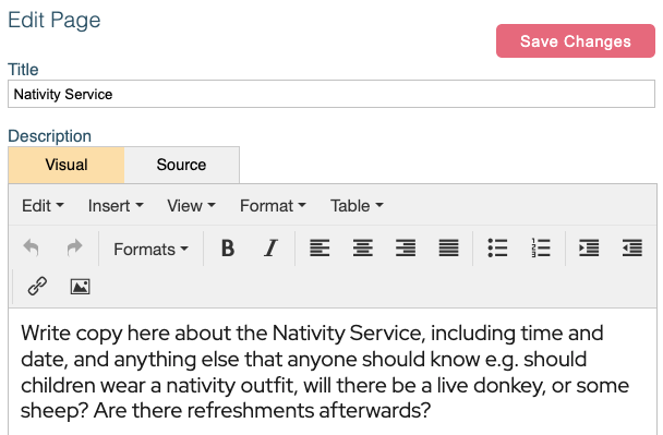 4. Write information on the page about the service, and click Save Changes. See some suggestions below.